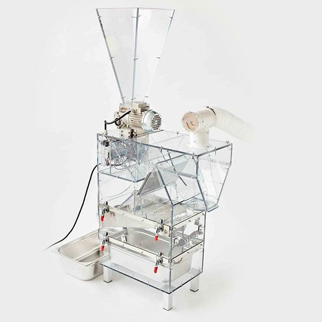 Crusher breaks raw or roasted beans (cocoa, malt et al.) into nibs. Winnower separates the nibs from shells. The vacuum module can be purchased from dealers at www.jettools.com. You can use similar vacuum modules with the following characteristics: 9